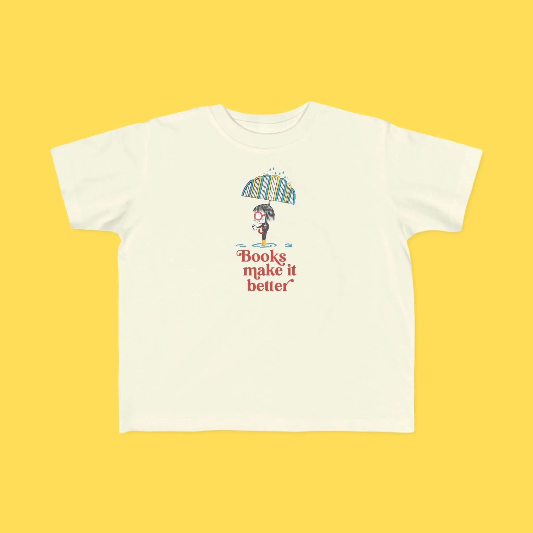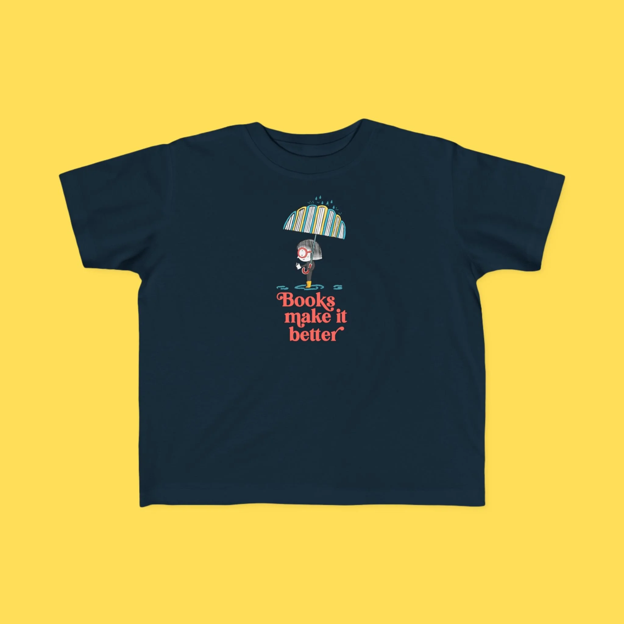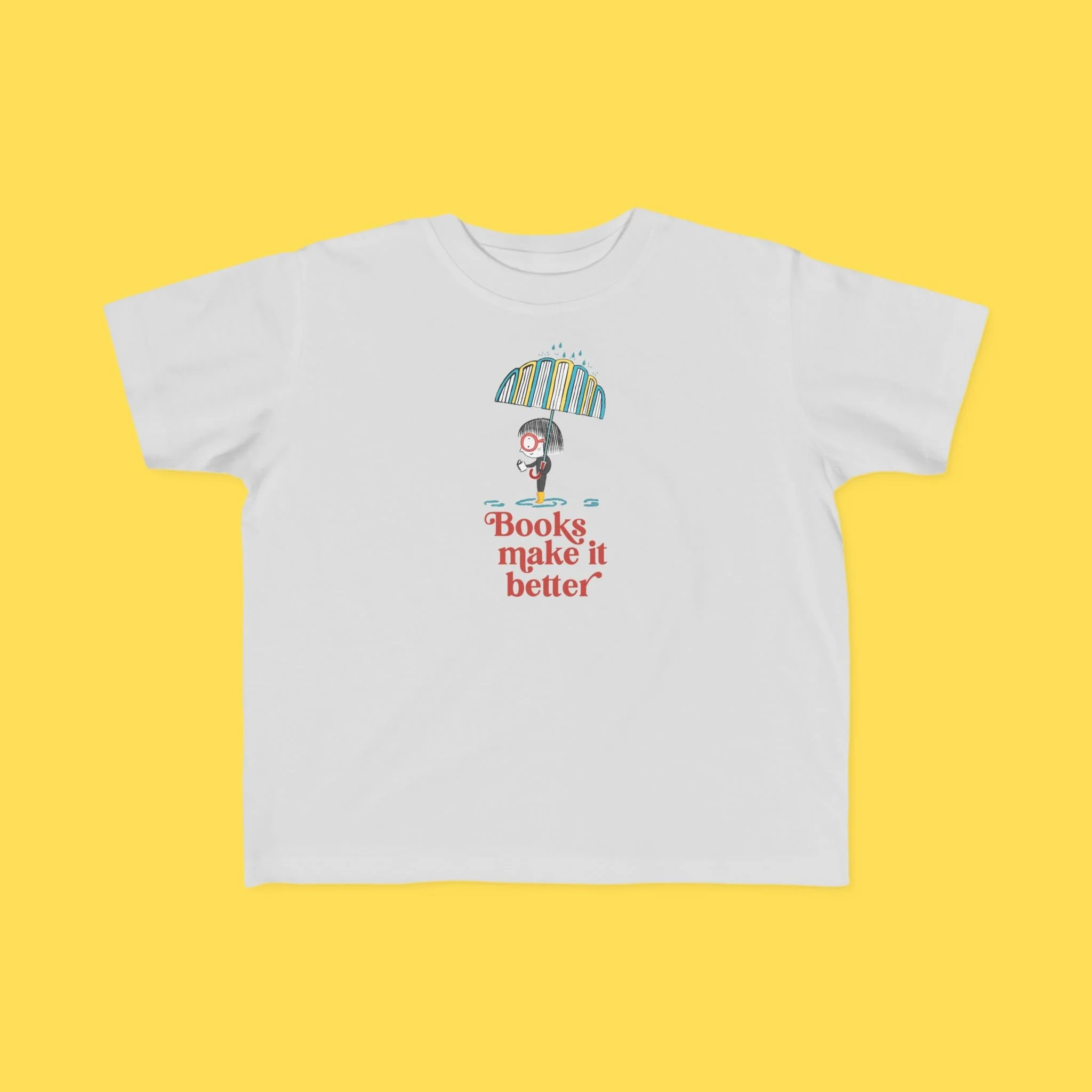 For the toddler who always wants you to read them just one more book, this Books Make It Better tee is the perfect everyday favorite. Featuring a cheerful reader under an umbrella made of books, it’s a fun reminder that stories can brighten even the rainiest days (and long car rides).