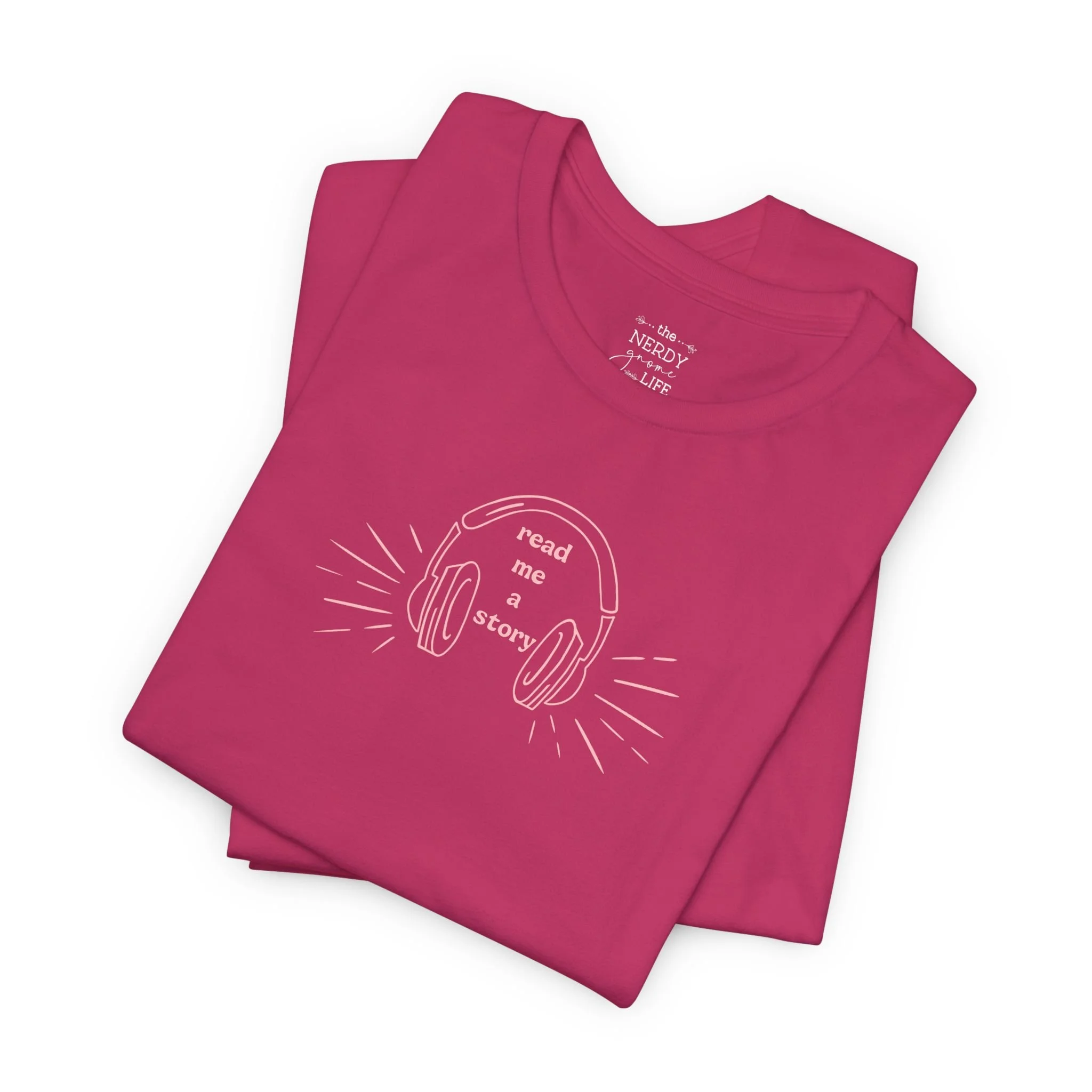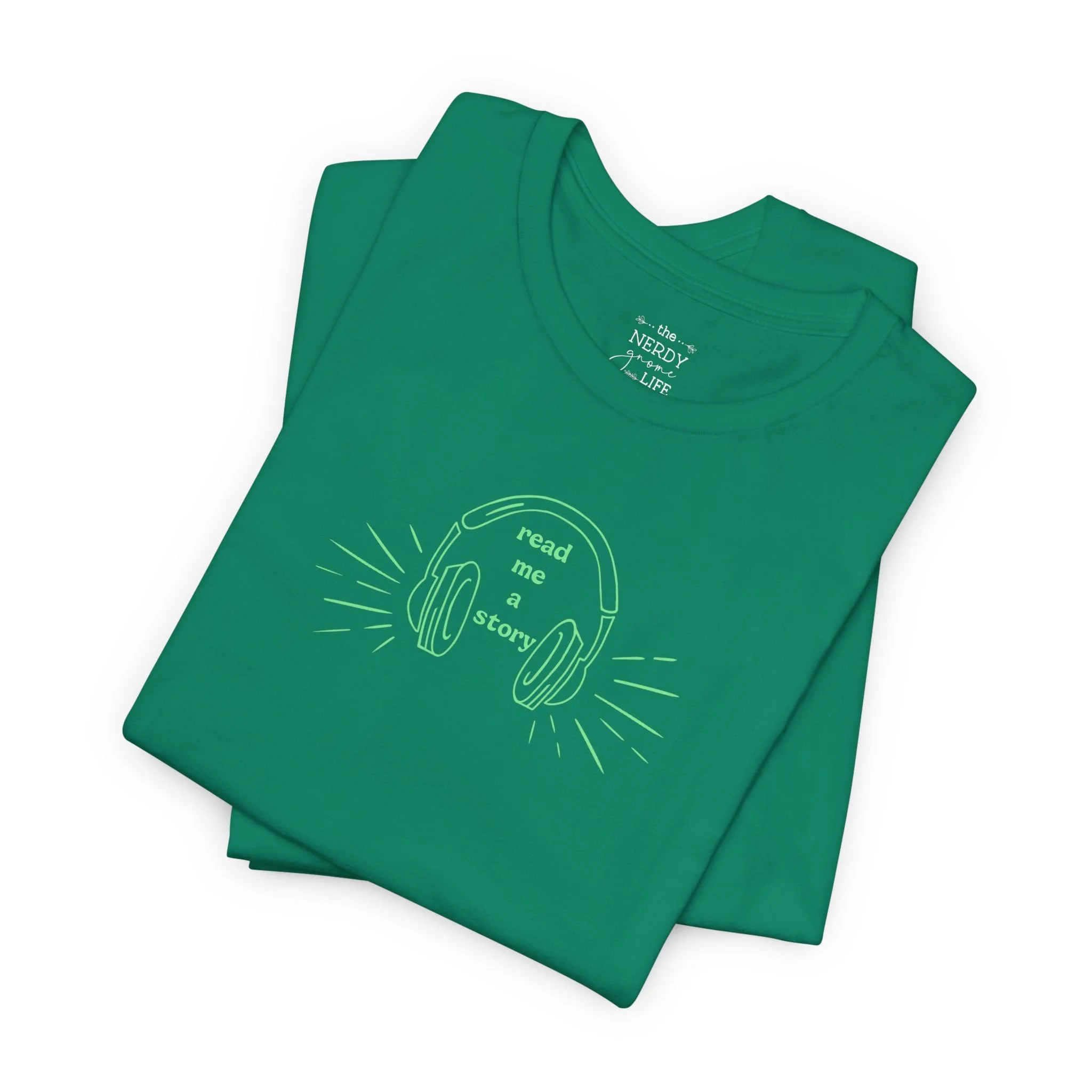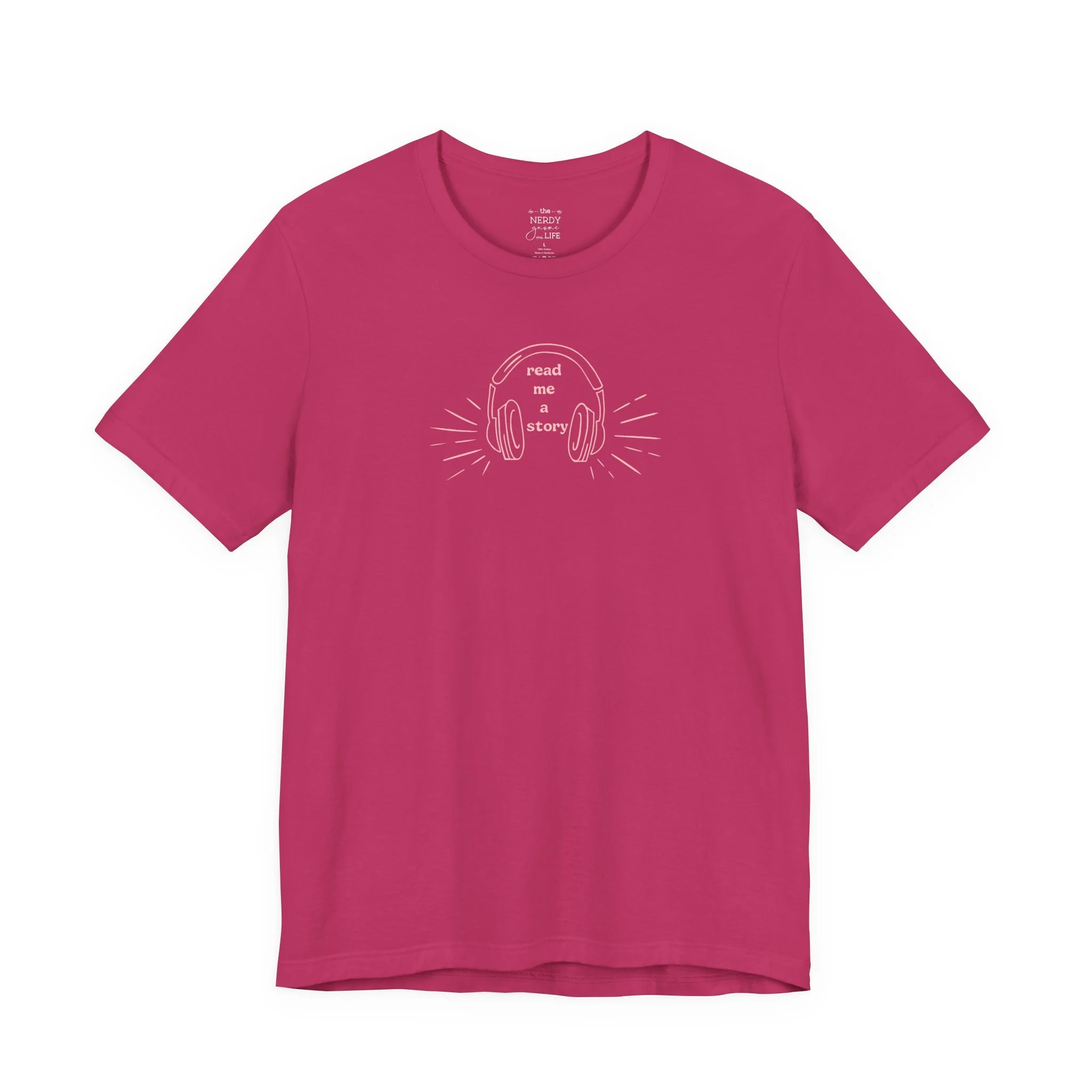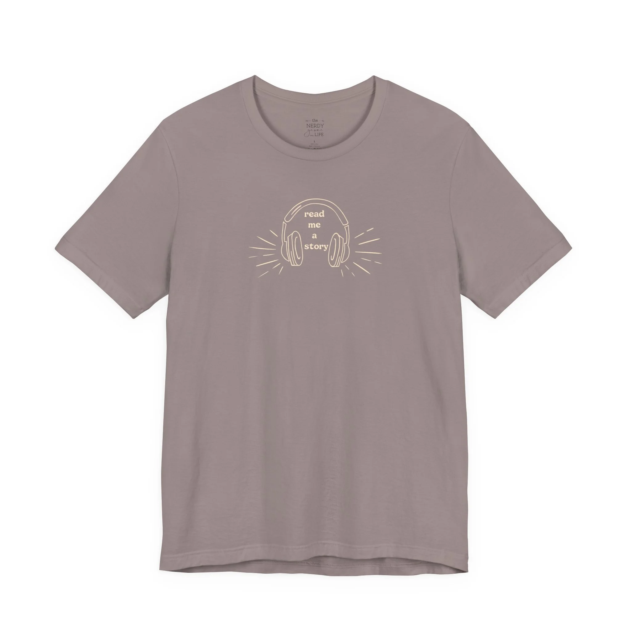 For bookworms who like their stories hands-free, the Read Me a Story tee celebrates audiobooks, podcasts, and delightfully nostalgic read-alouds. Featuring a hand-drawn pair of headphones with the gentle nudge to “read me a story,” this design is a nod to every listener who knows that, yes, audiobooks definitely do count as reading.